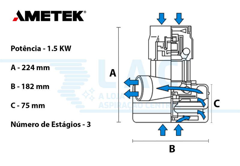 Motor Lamb Ametek By-Pass 3 Estágios Com Escape- Acessórios para Animais